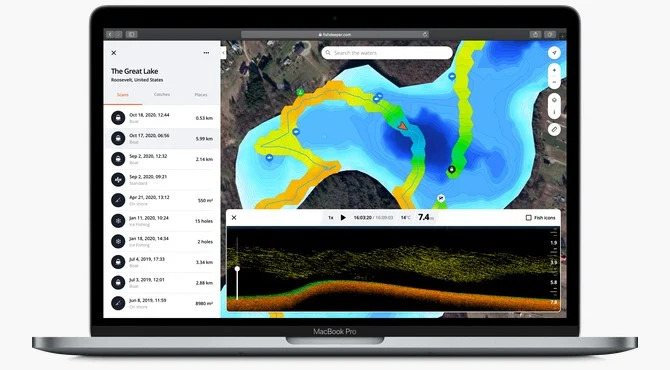 L'application Fish Deeper utiliser le GPS de votre smartphone pour effectuer une cartographie bathymétrique en direct lorsque vous traînez votre sondeur. Toutes les cartes sont sauvegardées et accessibles sur l'application et en ligne.