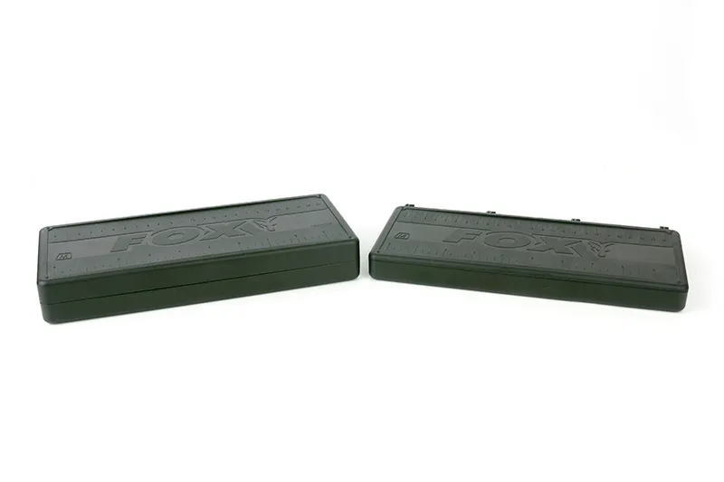 Découvrez le système de stockage innovant et interchangeable Fox F-Box Magnetic Double Rig Box Medium pour vos montages de pêche. Mousse EVA, barres profilées et charnières magnétiques pour un maintien optimal de vos épingles et hameçons.