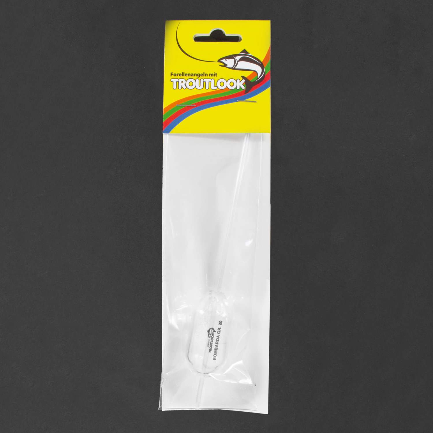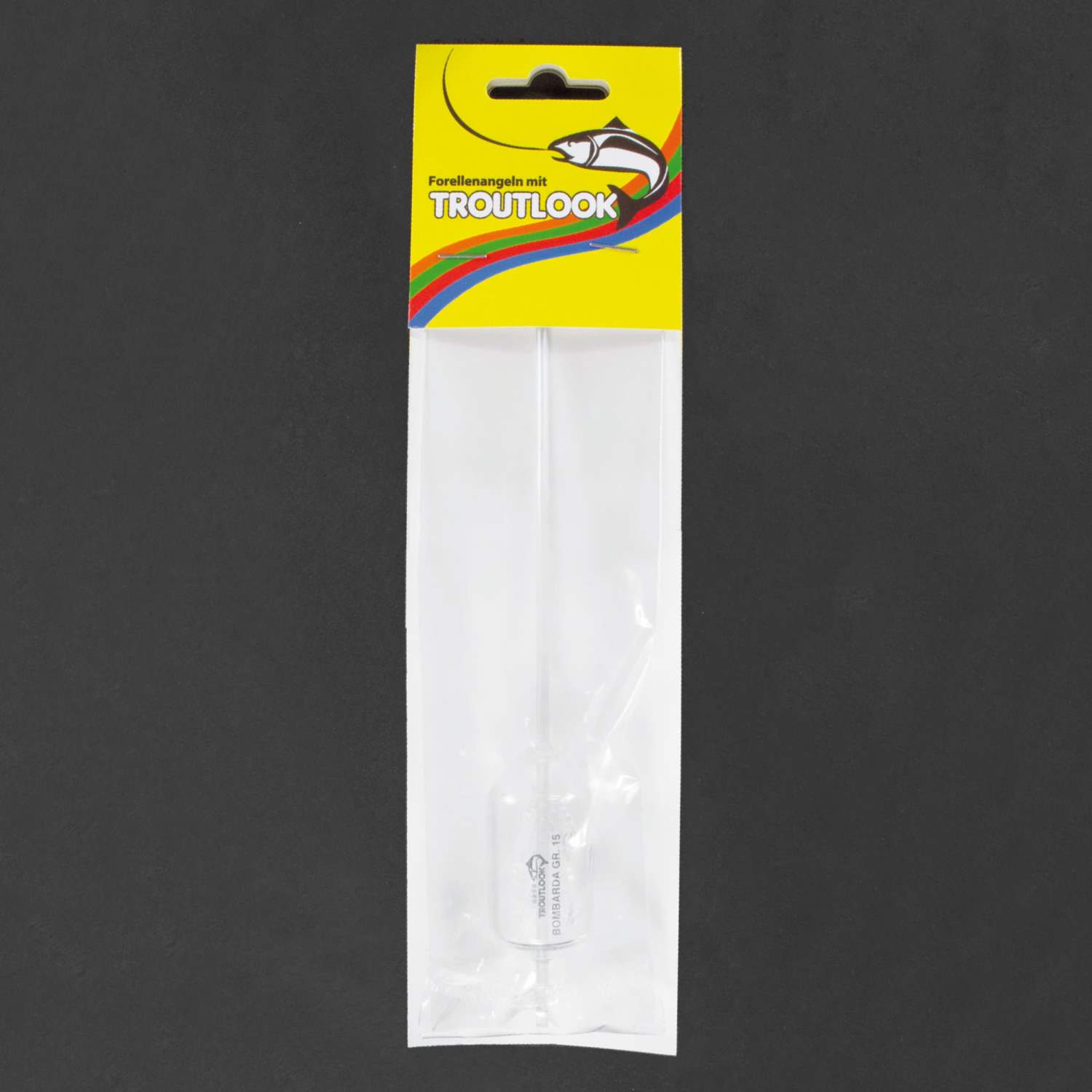 Avec le Glas Bombarda Troutlook, vous combinez Sbirolino et Trigger en un seul. Il est utilisé comme un Sbirolino normal et flottant, mais offre des avantages supplémentaires. Lorsqu'elle est récupérée, les petites billes de verre à l'intérieur produisent un bruit de secousse irrésistible. Le fil passe par un canal de fil intérieur. Une recommandation est notre enfonceur Sbirolino, avec lequel vous pouvez facilement passer la ligne à travers le Sbirolino. C'est particulièrement indispensable lorsque la ligne ou le Sbirolino est déjà mouillé. De plus, grâce au verre cristallin, le Bombarda est presque invisible pour les poissons.Troutlook offre tout ce que les pêcheurs de truite moderne attendent