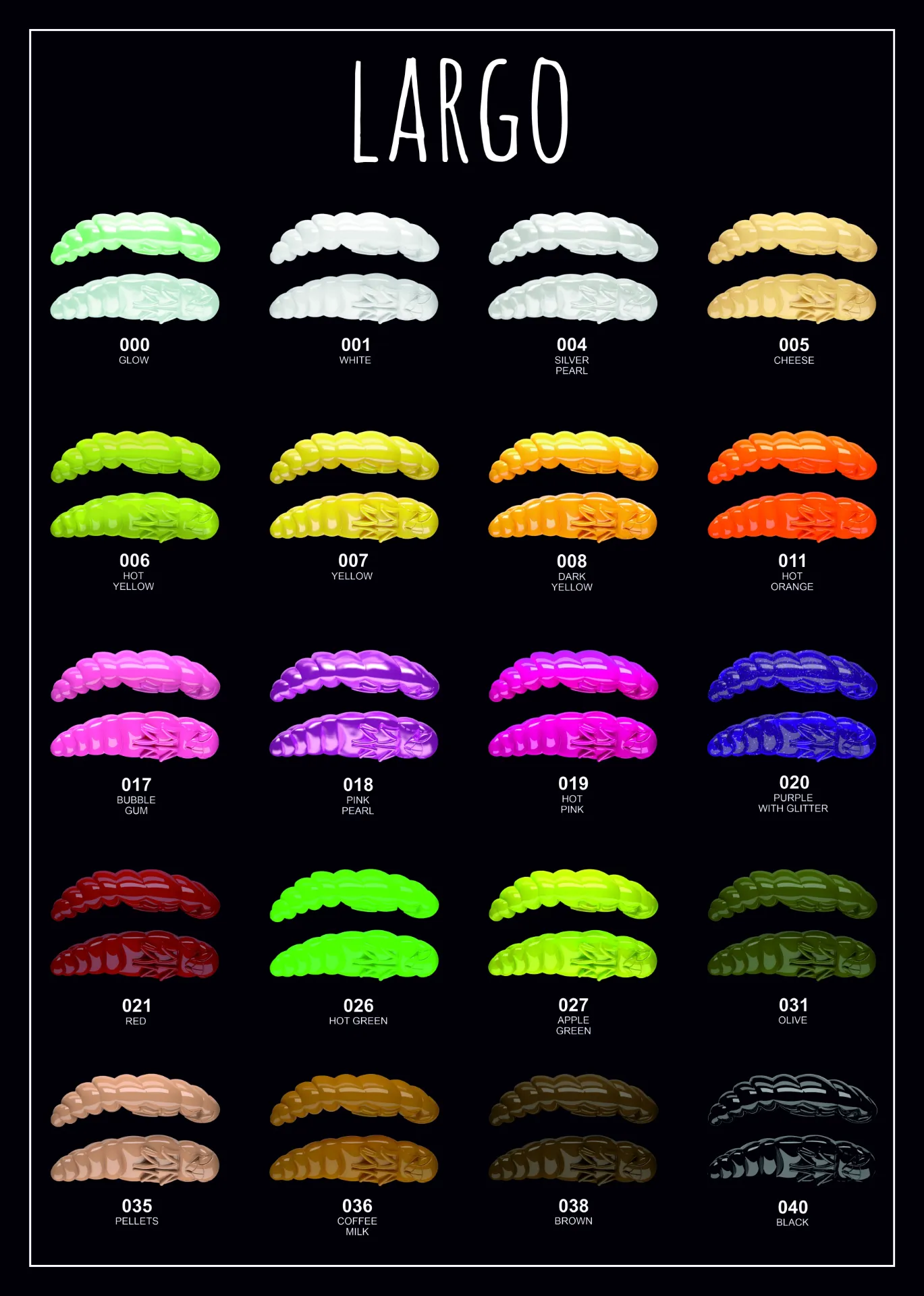 Largo – une imitation impeccable de la nymphe d'insecte, aliment fondamental pour de nombreuses espèces de poissons. C'est l'outil indispensable lorsqu'il s'agit de pêcher la truite arc-en-ciel dans des zones de pêche de type Trout Area, ainsi que pour la capture du chevesne en hiver et au début du printemps. Le leurre est proposé en deux tailles, 30mm et 35mm, permettant ainsi de sélectionner la dimension idéale en fonction des poissons que l'on souhaite attirer.