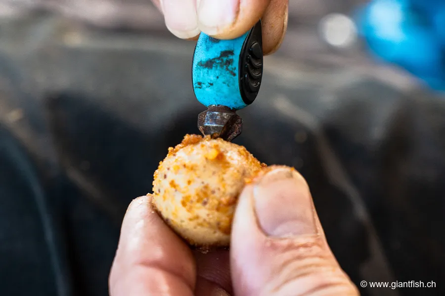 Um das Beste aus dem NASH Bore Tool herauszuholen, wählen Sie zunächst einen harten, für Ihre Montage geeigneten Köder. Halten Sie ihn fest zwischen den Fingern und führen Sie das Werkzeug vorsichtig in die Ködermitte ein, wobei Sie gleichmäßigen Druck ausüben. Drehen Sie das Werkzeug leicht, um eine saubere Aufnahme zu schaffen, die tief genug ist, um das Hair-Rig oder einen zweiten Köder aufzunehmen, ohne die Struktur zu schwächen.