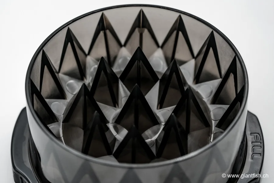 Kraftvolles Zerkleinerungssystem, das Boilies, Pellets, Tigernüsse usw. in feine oder grobe Partikel reduziert