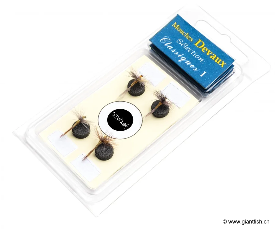 Devaux Auswahl 4 Fliegen und machen Sie jeden Fliegenfisch‑Ausflug zum Erfolg dank der Expertise und Leidenschaft einer renommierten Marke in der Angelwelt.