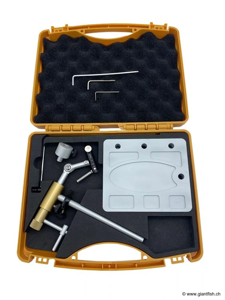 Ein präziser Halt sorgt dafür, dass der Haken während des Bindens perfekt fixiert bleibt und ein Abrutschen weitestgehend verhindert wird. Sein schwerer, robuster Sockel garantiert Stabilität auf der Arbeitsfläche, selbst bei feinsten Handgriffen. Ergonomie, Zuverlässigkeit und Langlebigkeit sind die Schlüsselmerkmale dieses Modells, das bei Enthusiasten den Unterschied macht.