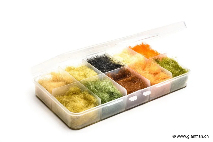das Binden von Nymphen unter Verwendung eines feinen Bleikopfes sowie für Körper von Emergern und kleinen Streamern. Kombinieren Sie dieses Dubbing mit feinem Faden oder Mikrofilament für präzise und ästhetische Bindungen. Es passt perfekt zu Techniken wie Dubbing-Loop oder klassischer Bindung, um Ihren Kreationen Volumen und Leben zu verleihen.