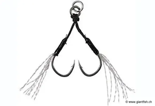 Dieser doppelte Assist-Haken für Jigs wurde entwickelt, um ein ausgewogenes Verhältnis aus Robustheit, Beweglichkeit und Diskretion zu bieten, bei gleichzeitiger einfacher Handhabung. Er ist in mehreren Größen erhältlich, um unterschiedlichen Jig-Größen und Zielfischen gerecht zu werden.