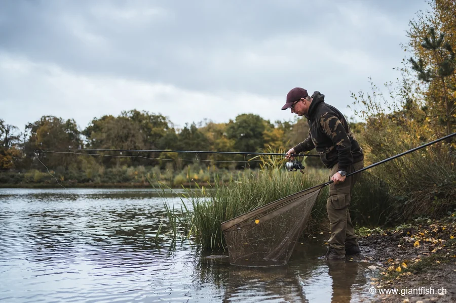 Ist das Netz für große Karpfen geeignet und respektvoll gegenüber dem Fisch? Ja, seine Tiefe und das spezielle Hexmesh sichern die größten Exemplare ohne Verletzungen.
