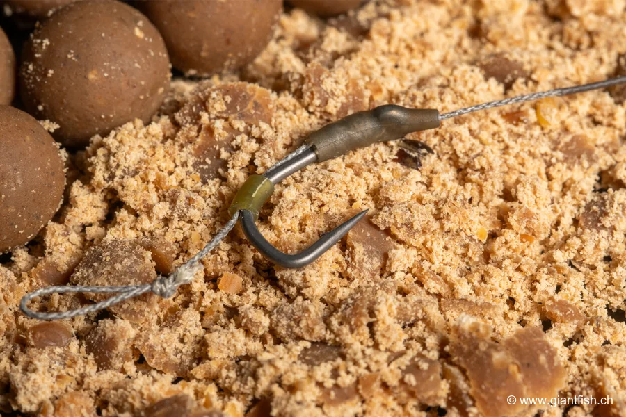 Beim Anbringen des Köders achten Sie darauf, Gewicht von Köder und Blei korrekt auszubalancieren, damit sich das Karpfen-Montage schnell in der Bisszone positioniert. Ein Test am Ufer oder in einem Eimer mit klarem Wasser erlaubt die Überprüfung der Drehgeschwindigkeit des Hakens und des Verhaltens des Köders.