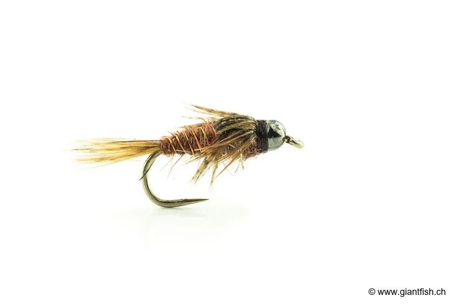 Euro-Nymphing, sie überzeugt jedoch ebenso beim Nymphenfischen unter der Rute oder in Kombination mit Trockenfliegen. Ideal für feine Vorfächer, lässt sie sich hervorragend mit Fluorocarbon-Spitzen kombinieren, um Diskretion und Effizienz zu erhöhen. Eine beschwerte Kopfmontage kann je nach Bedingungen sinnvoll sein, doch die Wolframperle sorgt bereits für ein rasches Absinken. Variieren Sie die Fangtiefe durch langsame Aktionen und natürliche Drifts, um Realismus und Beweglichkeit der Fliege optimal zu nutzen. Geeignet sowohl für schnell fließende Flüsse als auch für Bereiche mit geringerer Strömung.