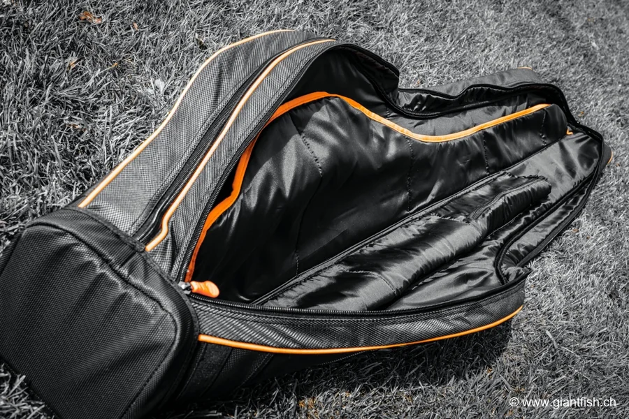- Zwei Innentaschen für Zubehör (Keschernetz, Distanzstangen, Schirm, usw.)