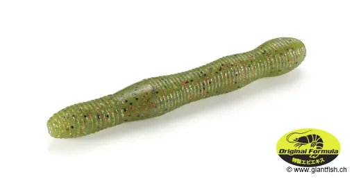 dichter Gummiköder vom Wurmtyp, speziell entwickelt, um Räuber in den kritischsten Phasen der Führung zum Biss zu verleiten: bei Pausen und beim Absinken. Sein leicht abgeflachter Körper erzeugt starken Wasserwiderstand, wodurch unregelmäßige Mikro-Vibrationen entstehen, die sehr attraktiv wirken. Diese unvorhersehbare Aktion imitiert perfekt ein angeschlagenes Ködertier – ein ideales Ziel für opportunistische Räuber.