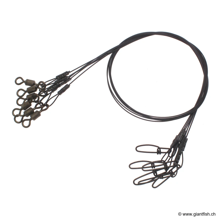 Stahlvorfach Supa snap traces kombiniert mehrere wesentliche Merkmale, die es zu einem unverzichtbaren Werkzeug für jeden Raubfischangler machen. Dank seiner unvergleichlichen Robustheit bietet es einen effektiven Schutz gegen die scharfen Zähne der größten aquatischen Raubtiere. Das Design aus 7-strängig geflochtenem Stahl bietet bemerkenswerte Flexibilität, die ein perfektes Naturverhalten Ihrer Köder und Lockmittel ermöglicht, während es den Drehungen und den wesentlichen Belastungen während des Kampfes standhält.