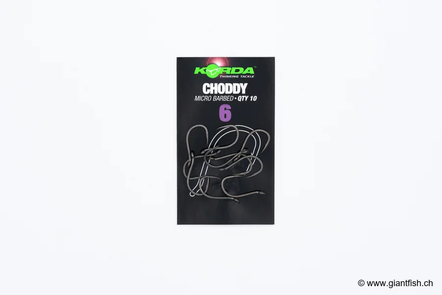 Was ist der Hauptunterschied zwischen dem Choddy Größe 10 und einem klassischen Haken Der Choddy hat eine spezifische Krümmung, eine nach außen gedrehte Öse und ist für steife Montagen optimiert.