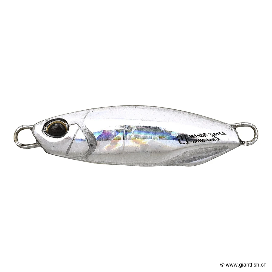 Entwickelt von der japanischen Marke DUO, bekannt für die Qualität ihrer Köder, bietet der Drag Metal Cast Slow einen ausgezeichneten Kompromiss zwischen Wurfweite, Erkundungsvermögen und einfacher Führung. Seine kompakte Form und die interne Balance verleihen ihm beim Absinken und Loslassen einen sehr attraktiven, gleitenden Lauf, der einen geschwächten Beutefisch imitiert.