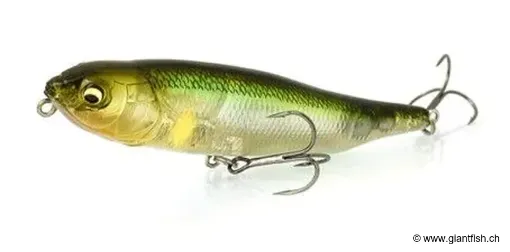 Le profil du leurre a été étudié pour offrir une bonne prise d'eau sans freiner la glisse. Un simple mouvement du scion, associé à une récupération régulière, suffit à lui faire dessiner des S marqués à la surface. En marquant des pauses, il reste en position d'attaque, prêt à être intercepté par un prédateur qui suit de près. Cette polyvalence d'animation permet d'adapter le leurre de surface Megabass à de nombreuses situations rencontrées au bord de l'eau.
