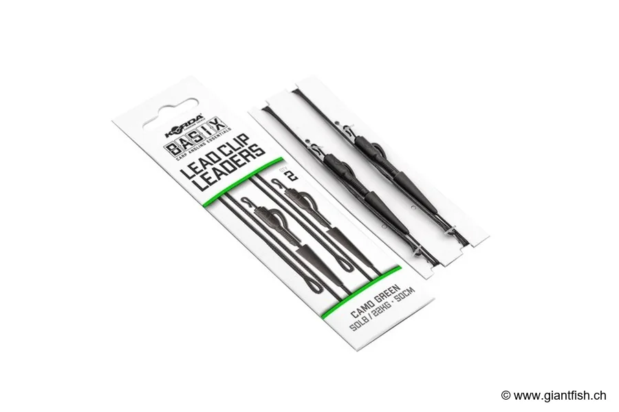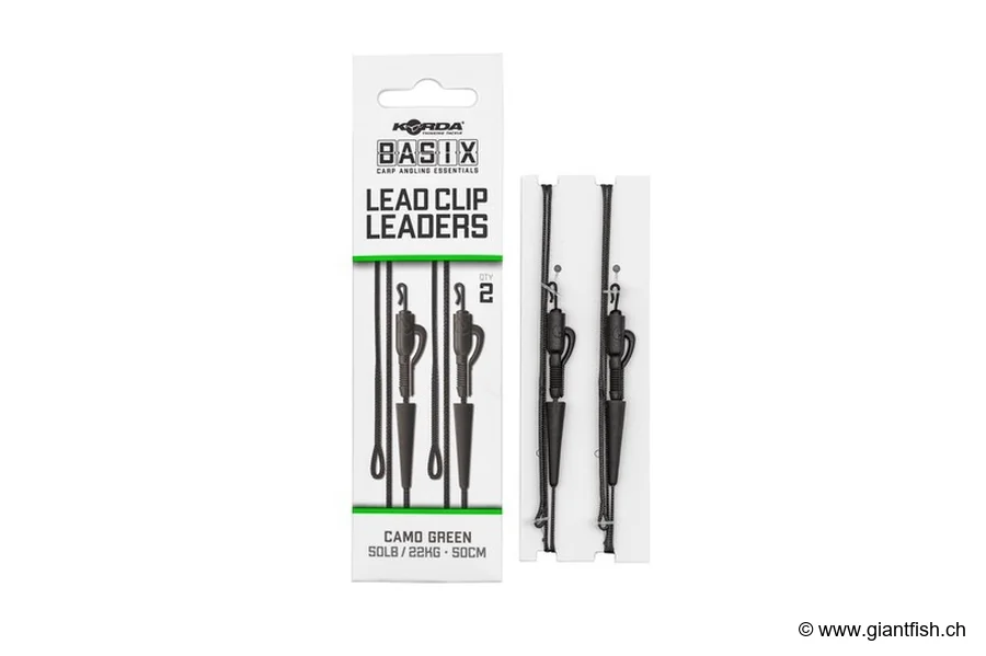Vorteile und Stärken des Korda Basix Lead Clip Leaders: Der Hauptvorteil dieses Leaders ist seine Fähigkeit, sich in die Umgebung einzufügen. Seine grüne Tönung, die darauf ausgelegt ist, unter Wasser möglichst wenig wahrnehmbar zu sein, stellt sicher, dass die vorsichtigsten Karpfen nicht durch die Anwesenheit des Köders alarmiert werden. Die Dichte des bleifreien Materials sorgt für ein schnelles Absenken, hält Ihre Montage sicher am Boden und minimiert das Risiko des Abhebens bei Wasserbewegungen. Das Blei-Clip System bietet maximale Sicherheit und ermöglicht ein schnelles Abwerfen, um den Fang zu schützen und Hindernisse zu vermeiden. Die Integration des Tail Rubber verringert Verwicklungen für eine optimale Präsentation. Seine robuste Konstruktion gewährleistet eine hohe Haltbarkeit, selbst bei intensivem Angeln.