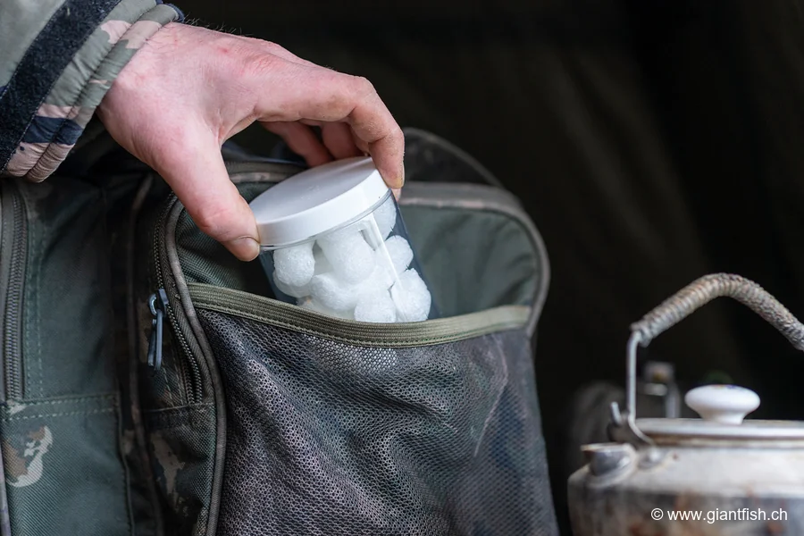 „Der Schaum, der an die Oberfläche kommt, dient mir als Marker, um sehr präzise anzufüttern. Ein unverzichtbares Accessoire beim Karpfenangeln.“
