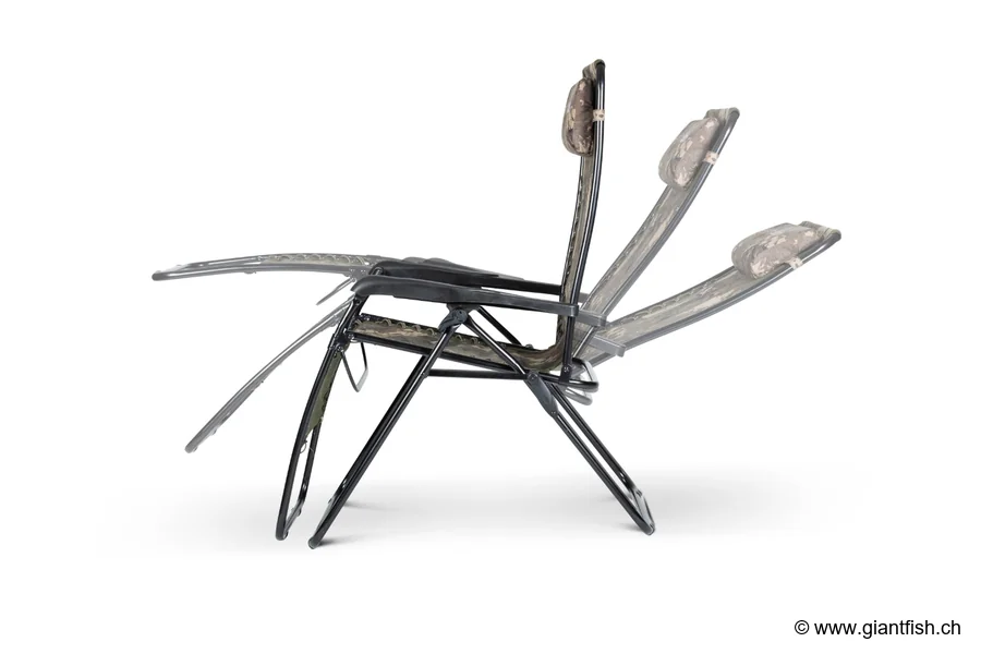 Sie bietet eine sehr bequeme Sitzposition und lässt sich schnell in eine stärker geneigte Haltung bringen, wodurch sie sowohl für Karpfenangler als auch für Ansitzangler geeignet ist, die viel Zeit im Sitzen verbringen. Die Armlehnen dienen als verlässliche Stütze, um bei einem Biss schnell aufzustehen, während die hohe Stabilität der Konstruktion auf weichem oder geneigtem Untergrund Sicherheit gibt.