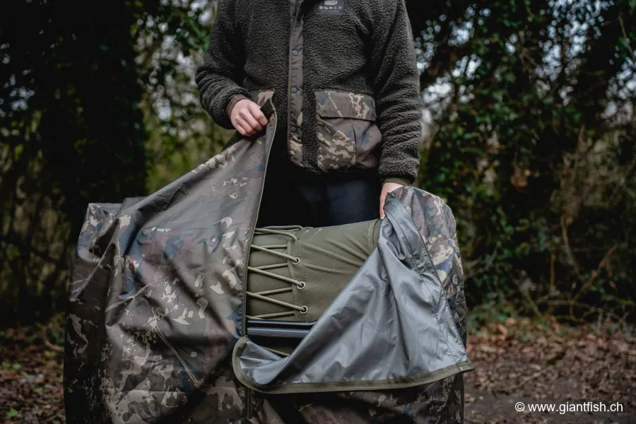 Ein weiterer Pluspunkt ist die Kompatibilität mit großvolumigen Sleep-Systemen. Der Subterfuge ist für moderne, oft breitere und dickere Schlafsysteme ausgelegt, bleibt dabei jedoch handlich. Karpfenangler mit komfortablen Bedchairs oder vier- bis fünf Jahreszeiten-Systemen finden so eine praktische Transportlösung, ohne mehrere Hüllen zu benötigen.