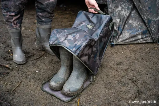 Entwickelt für Angler, die zwischen schnellen Sessions und längeren Aufenthalten am Wasser wechseln, bietet die NASH Subterfuge wasserdichte Wader- und Stiefeltasche eine besonders praktische 2‑in‑1-Lösung. Sie ermöglicht sowohl den Transport von schlammigen Waders oder Stiefeln im Fahrzeug ohne Verschmutzung des Kofferraums als auch deren Schutz vor Regen, wenn sie außerhalb eines Bivvys oder Unterstands abgestellt werden. Indem sie die gesamte Beinbekleidungs‑Schutzausrüstung in einem Behälter vereint, vereinfacht sie die Organisation Ihres Equipments am Platz.