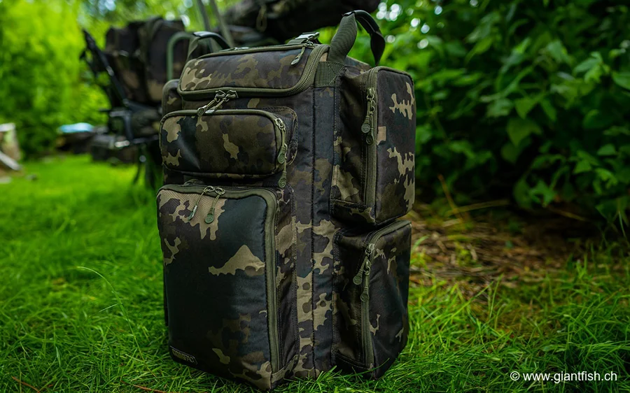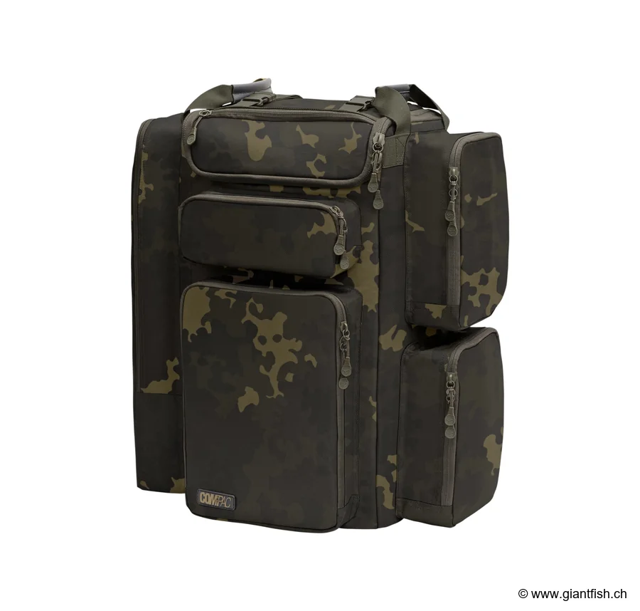 Korda Compac Rucksack 60 Dark Kamo, rüsten Sie sich mit dem Besten für Leistung, Organisation und Komfort auf dem Wasser aus.