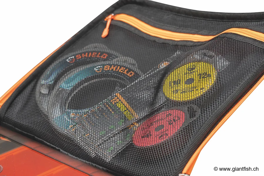 - Zwei große Außentaschen für Zubehör und Vorfächer