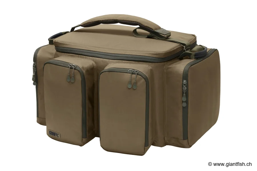 Welche Accessoires kann ich im Compac Carryall X-Large aufbewahren?Diese Tasche ist dafür gedacht, jede Art von Angelausrüstung aufzunehmen, von Vorfachboxen bis zu zusätzlicher Kleidung sowie Elektronik, Köder und verschiedene Accessoires.