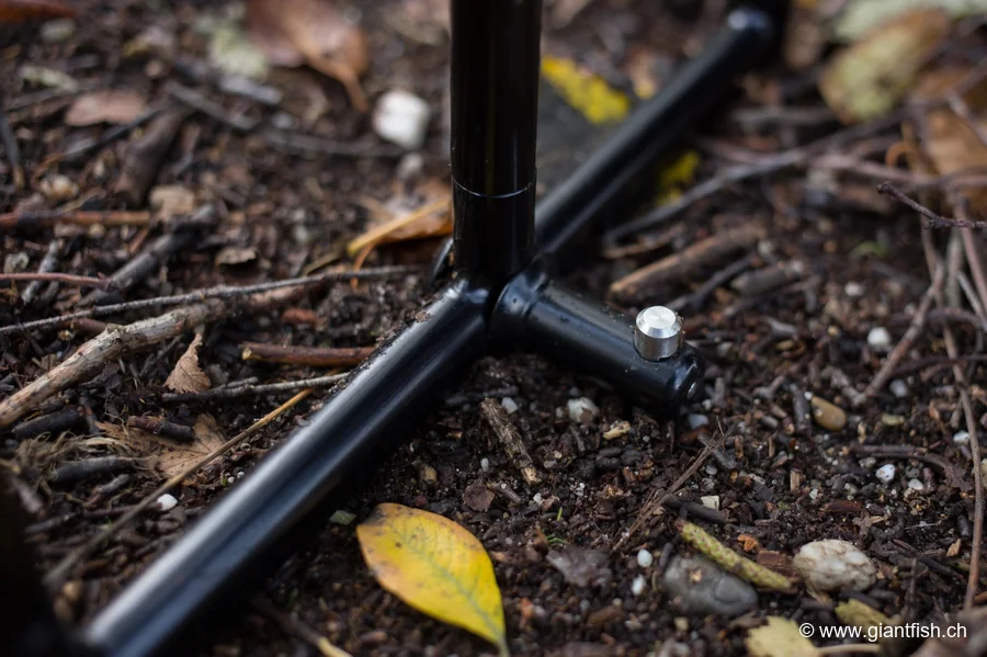 unübertroffene Stabilität, selbst auf weichen oder unregelmäßigen Böden, dank seines tiefgründigen Pfahlkonzepts. Sein eloxiertes Aluminium verleiht dem Produkt eine überlegene Langlebigkeit ohne Kompromisse beim Gewicht. Es zeichnet sich durch eine