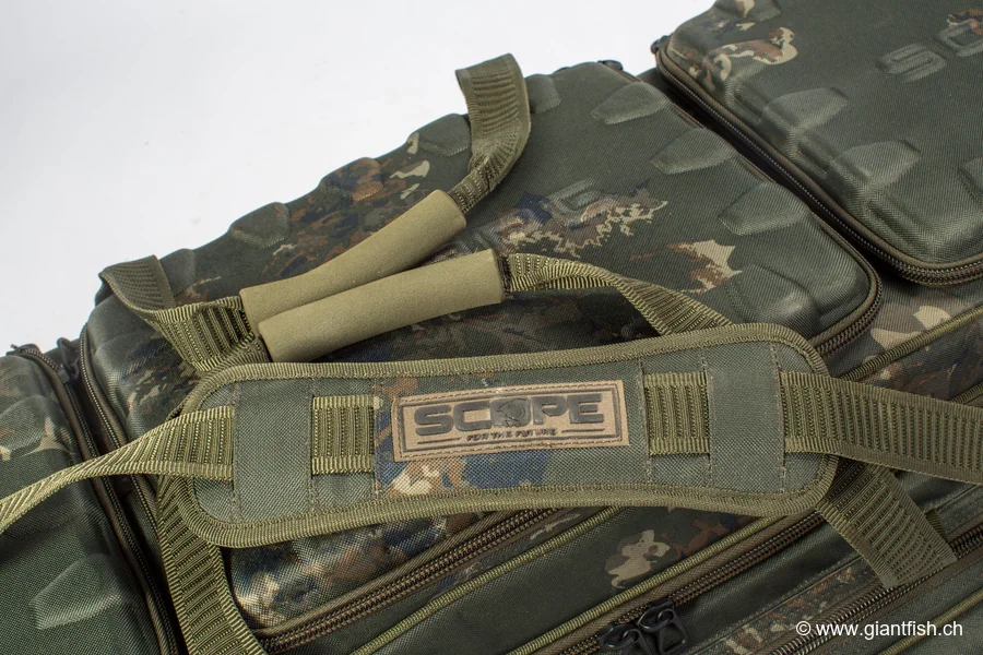 Das Design ist besonders auf moderne, mobile Karpfenansätze ausgelegt. Dank gut positionierter Griffe und gepolstertem Schultergurt lässt sich diese Rutenhülle für mobile Karpfenangler leicht in der Hand, auf der Schulter, auf einem Trolley oder beim Bootsfahren auf Seen und Flüssen transportieren.