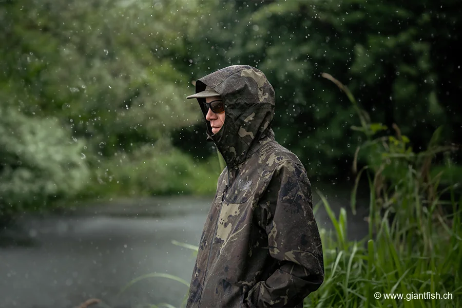 Die Jacke ist auf dauerhaften Komfort am Wasser ausgelegt und begleitet die Bewegungen des Anglers beim Werfen, im Drill oder beim Bewegungswechsel am Platz. Sie bildet eine effektive Barriere gegen Regen und Spritzwasser und reduziert gleichzeitig innere Kondensation durch ihre atmungsaktive Struktur. So bleiben Sie auf Ihre Angelei konzentriert – nicht auf das Wetter.