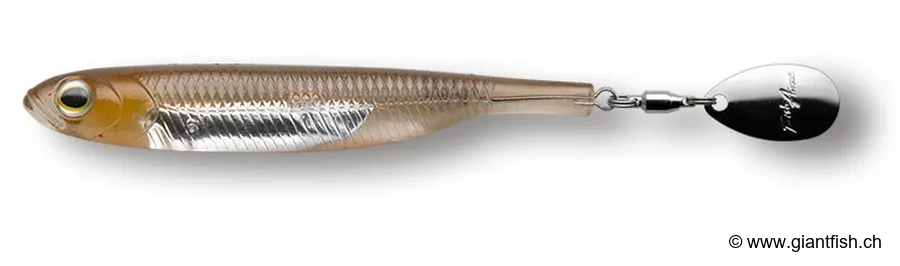 Der FLASH J SPIN zeichnet sich durch die Kombination der Zurückhaltung eines fein gearbeiteten Weichköders und der starken Anziehungswirkung eines Metallblatts aus. Diese Kombination erzeugt ergänzende visuelle und vibrative Signale, die selbst vorsichtige oder erfahrene Fische zum Anbeißen verleiten. In klarem wie in leicht getrübtem Wasser reflektiert das Colorado-Blatt kurze Lichtblitze, die Raubfische aus der Distanz anlocken, während der flexible Körper sie im letzten Moment überzeugt.