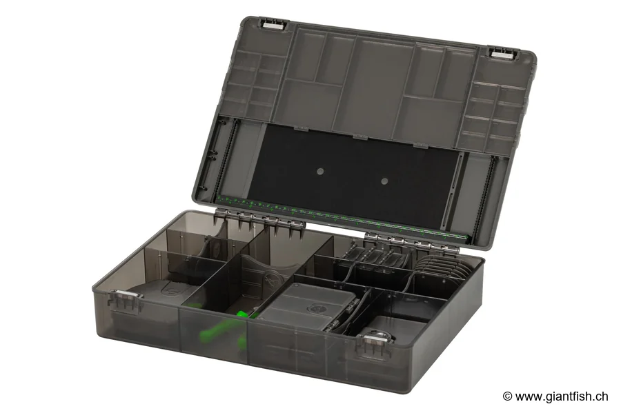 Vielseitigkeit ist unvergleichlich: Egal, ob Sie Karpfenangeln, Feederangeln oder Angeln ausüben, diese Box passt sich allen Techniken und Stilen an. Ihr XXL-Volumen und die zahlreichen Fächer beseitigen jede Platzbeschränkung und verhindern Zeitverschwendung beim Suchen Ihrer Accessoires. Jedes Innenmodul wurde so konzipiert, dass es den