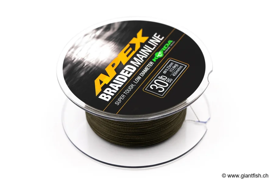Korda Apex Braided Mainline 30lb 1200 m, a braid designed for demanding anglers seeking safety, performance, and discretion on all waters.