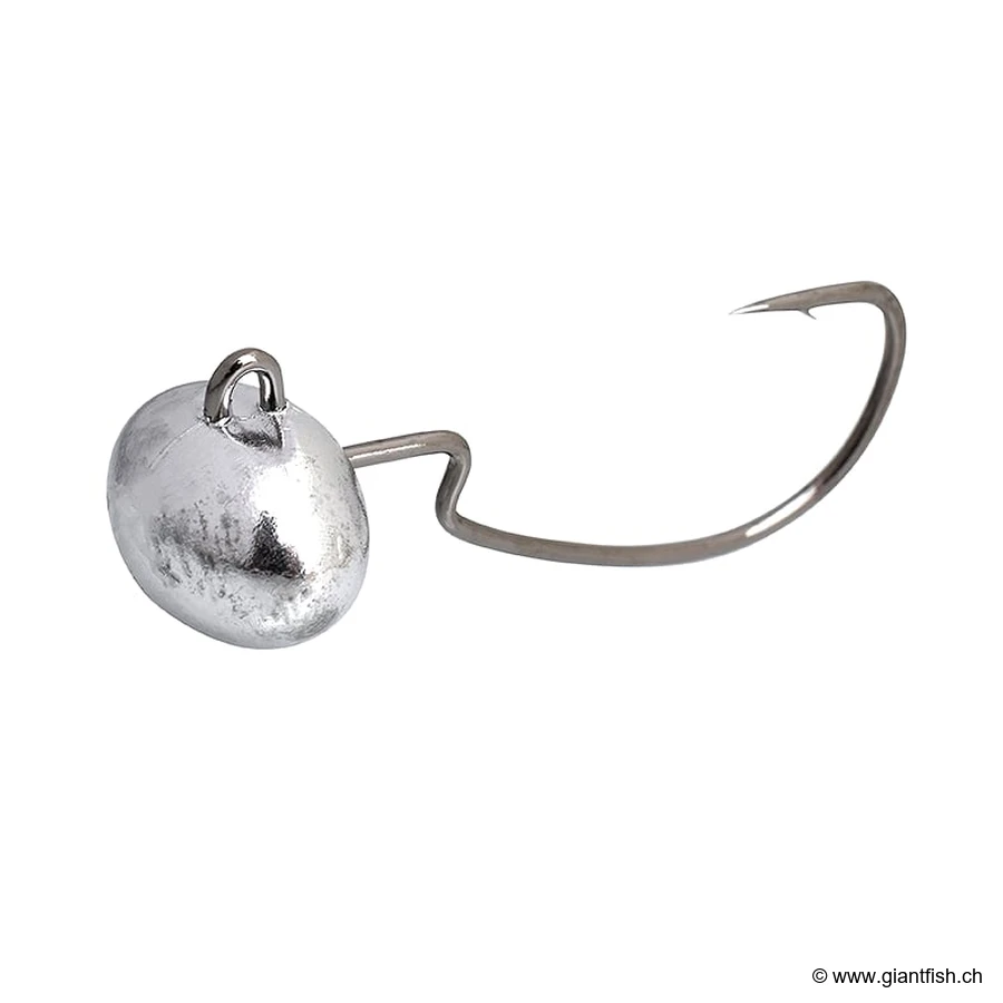 The football-shaped jig head provides great stability and presents your lures more naturally on cluttered or rocky bottoms. This shape reduces snagging and allows subtle animations, highly attractive to wary fishes.