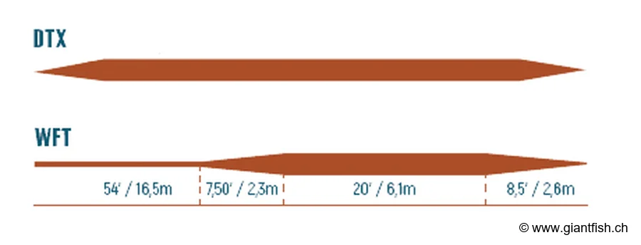 WFT/DTX taper profile designed for natural, discreet presentations and adapted to different fishing distances.