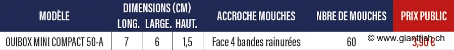 Expert angler testimonial"March 2024 outing β this box transformed my organization! Finally an ultra-light format, easy to slip into the pocket. The grooves hold flies perfectly, even in rain. The practicality of the Devaux OUIBOX MINI COMPACT shines on mobile sessions where every gram counts. I highly recommend it to anyone who likes to travel light while being fully equipped!" β Jean, fly angler for 20 years.FAQ and additional informationQuestion 1: Is this box suitable for all types of flies?Answer: Yes, its design is well suited to both emergers and nymphs, providing optimal retention.