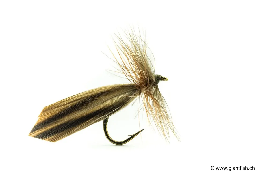 - Dry fly modeled on trichoptera (sedge) for rivers and fast water