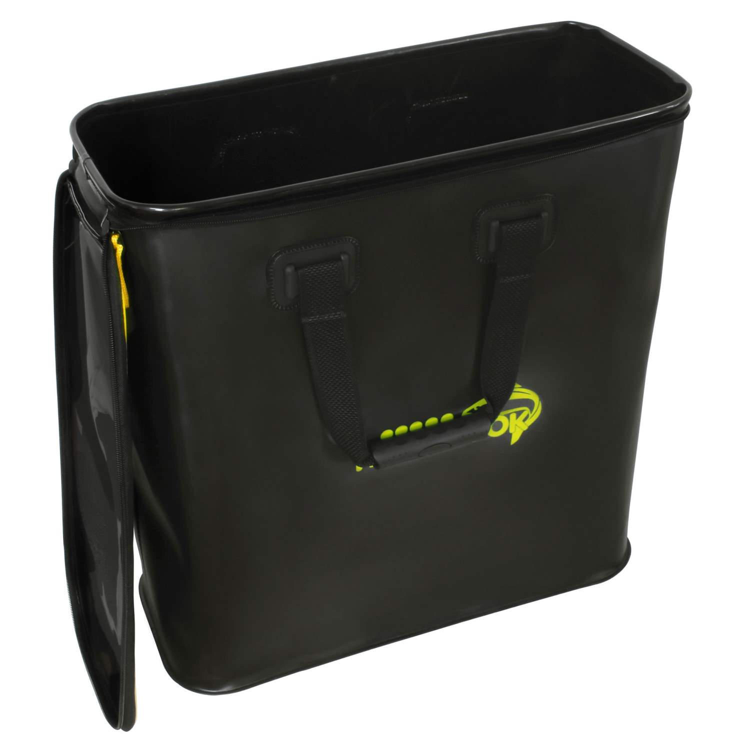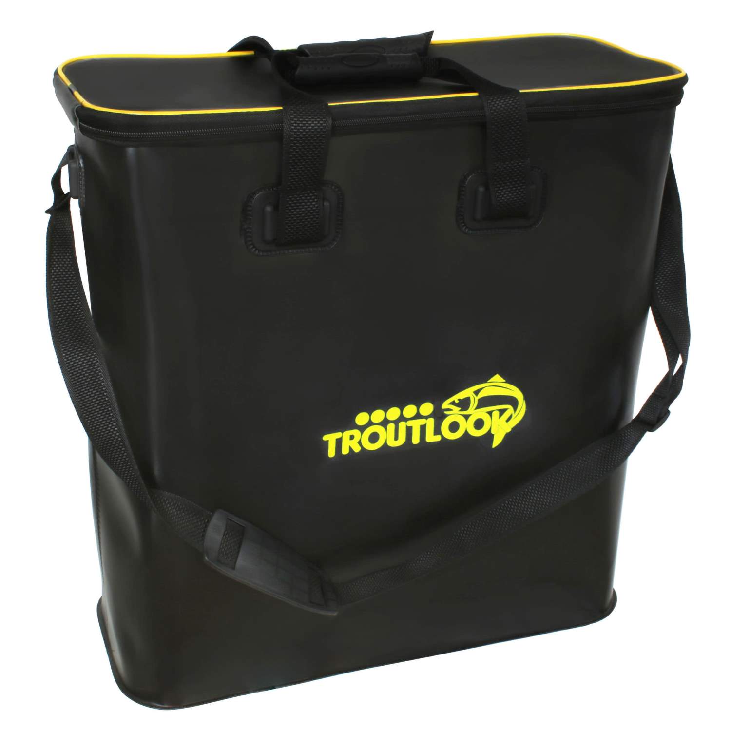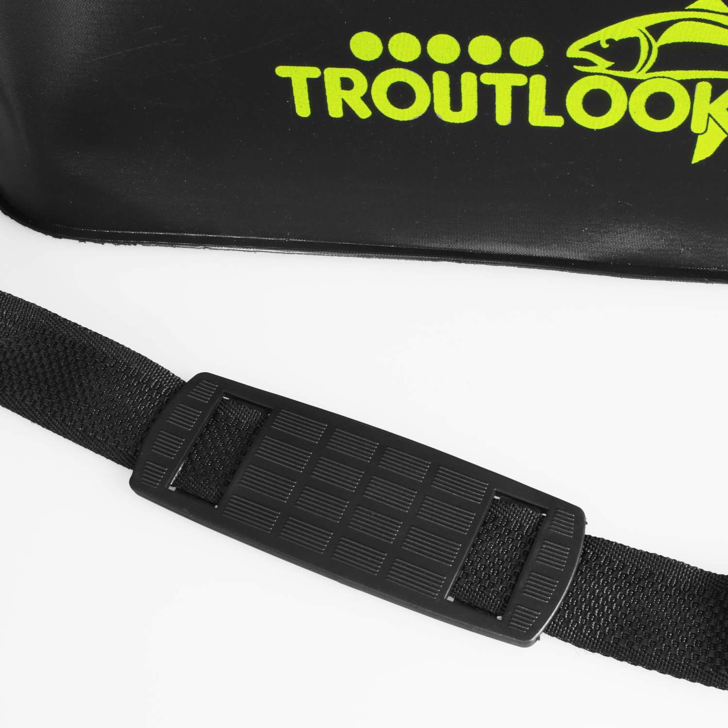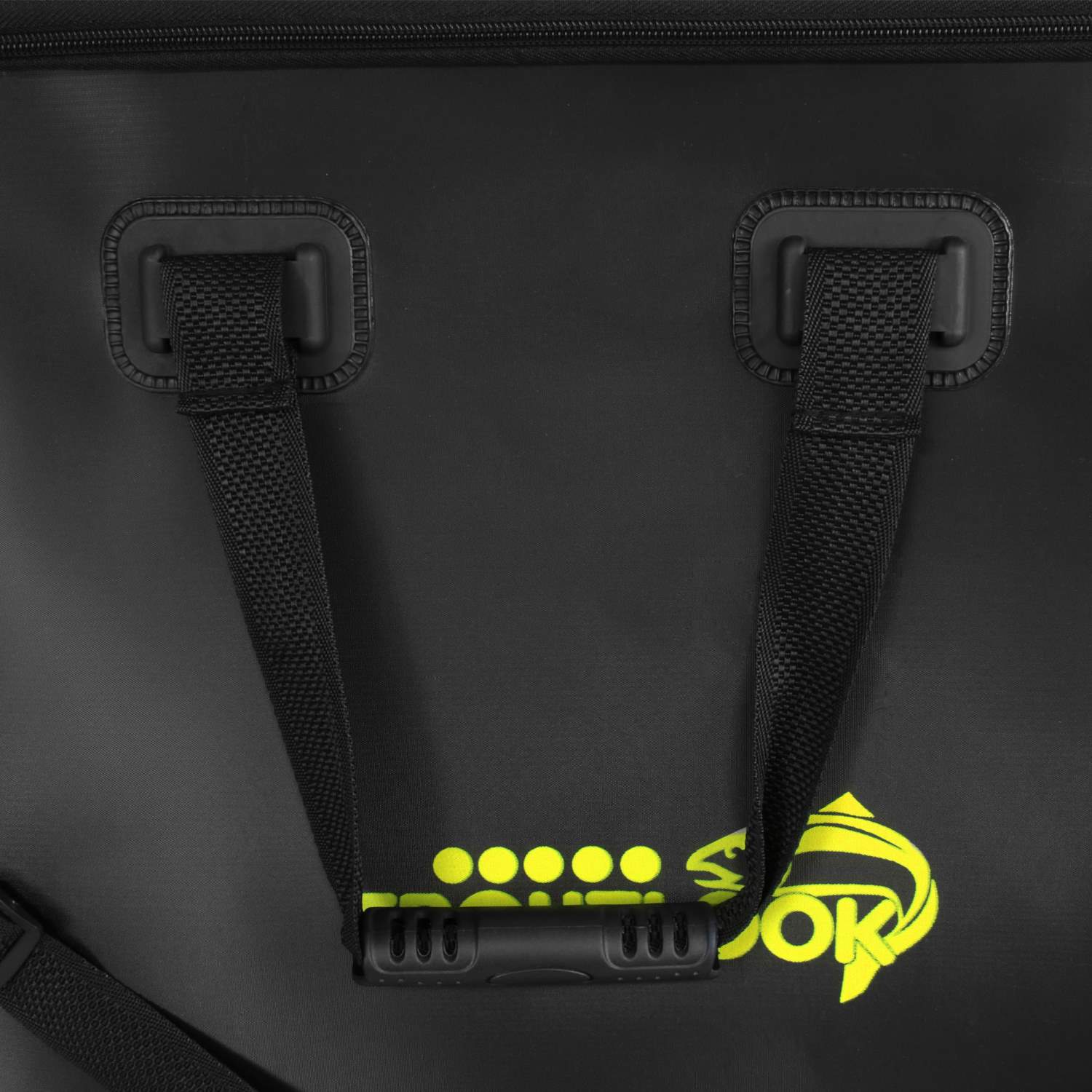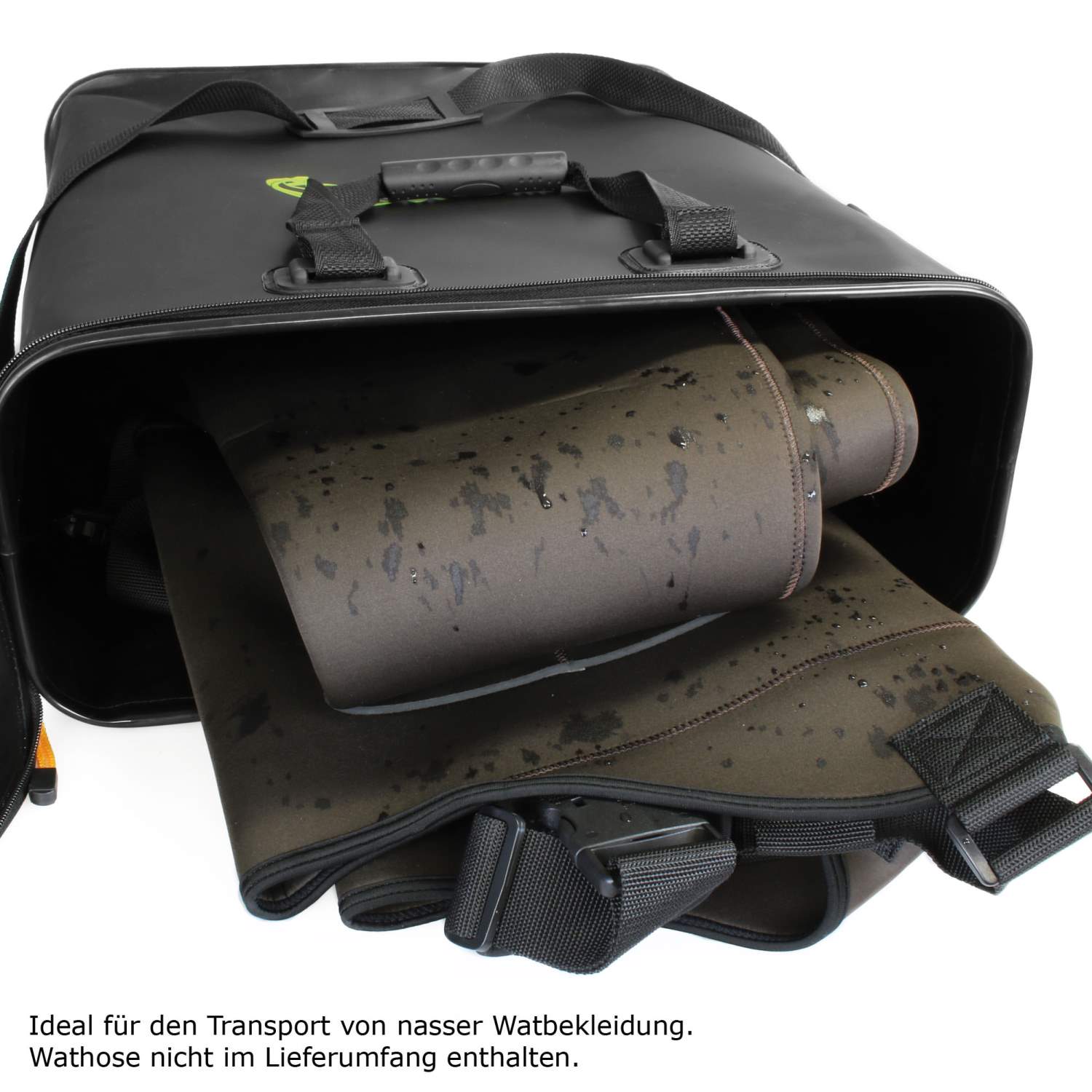 Le sac Troutlook est fabriqué en EVA et en matériau étanche, de sorte que des matériaux humides ou mouillés peuvent également être transportés. La fermeture à glissière est dotée d'un grand bourrelet qui ne laisse pas passer les éclaboussures d'eau.