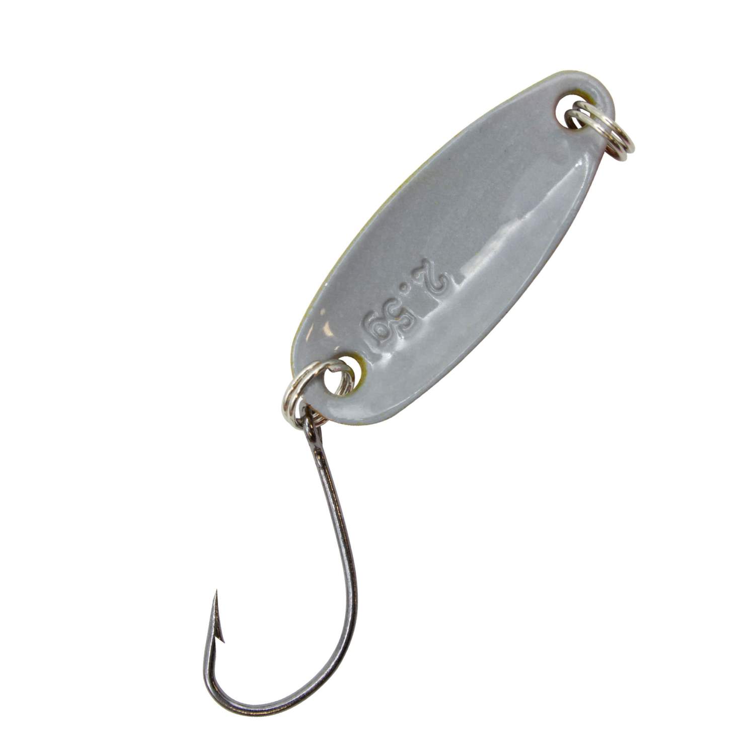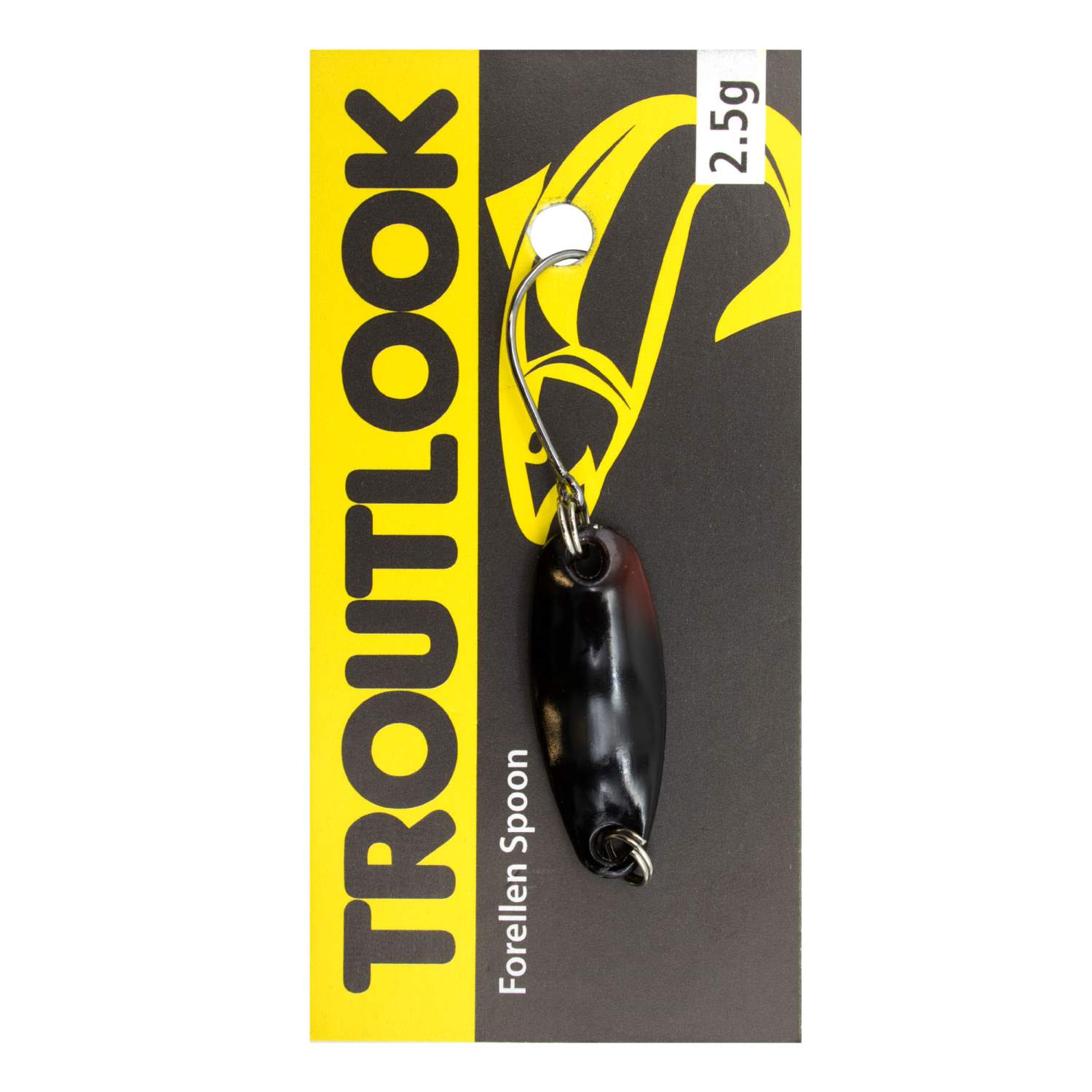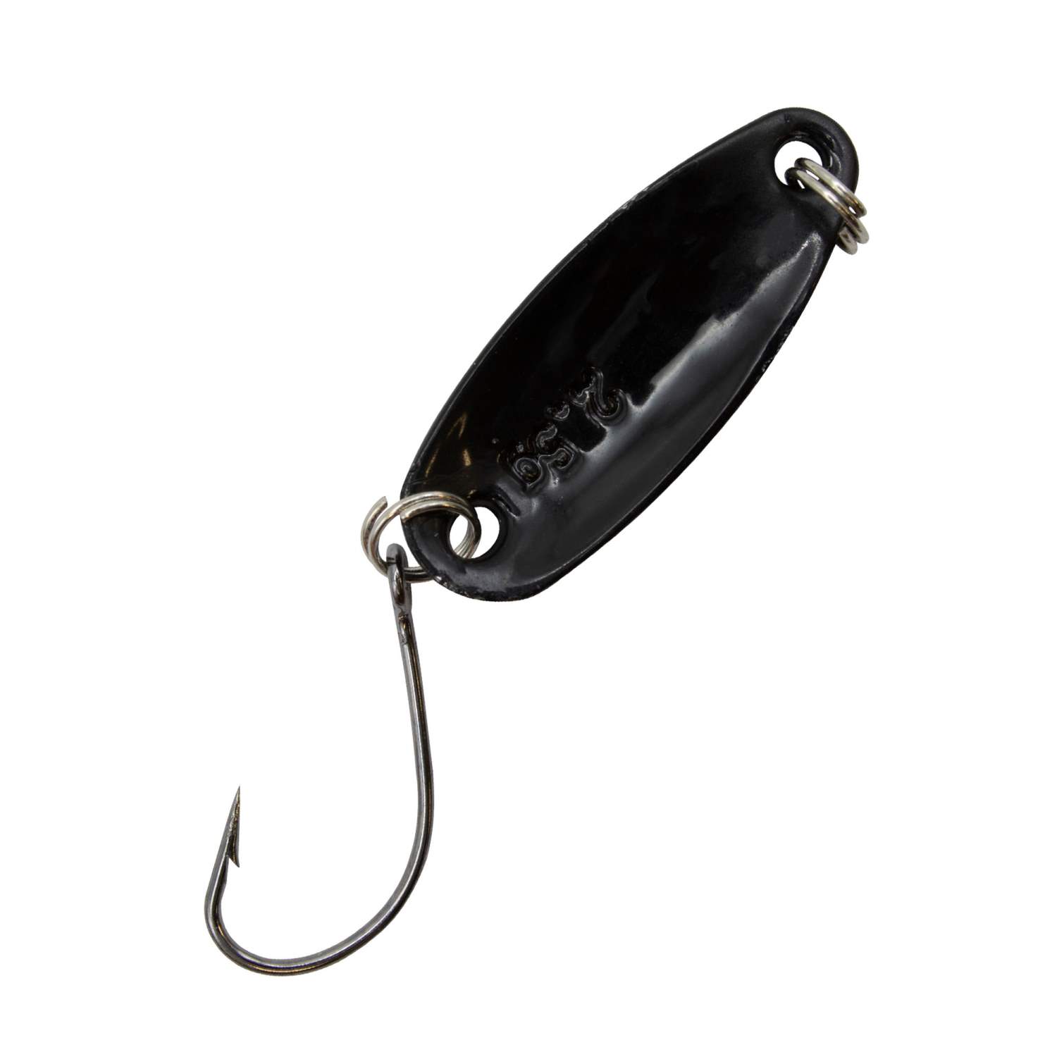Les cuillères Troutlook sont équipées d'un hameçon simple ultra-fin et ultra-tranchant d'un diamètre de fil de seulement 0,7 mm. La pointe droite des hameçons en acier au carbone japonais avec finition en nickel noir se fixe solidement dans la bouche de la truite lorsque celle-ci mord. Cela garantit également que la touche fonctionne presque à 100%. Les appâts ayant une taille que les truites peuvent prendre en entier ont donc un taux de capture nettement plus élevé.