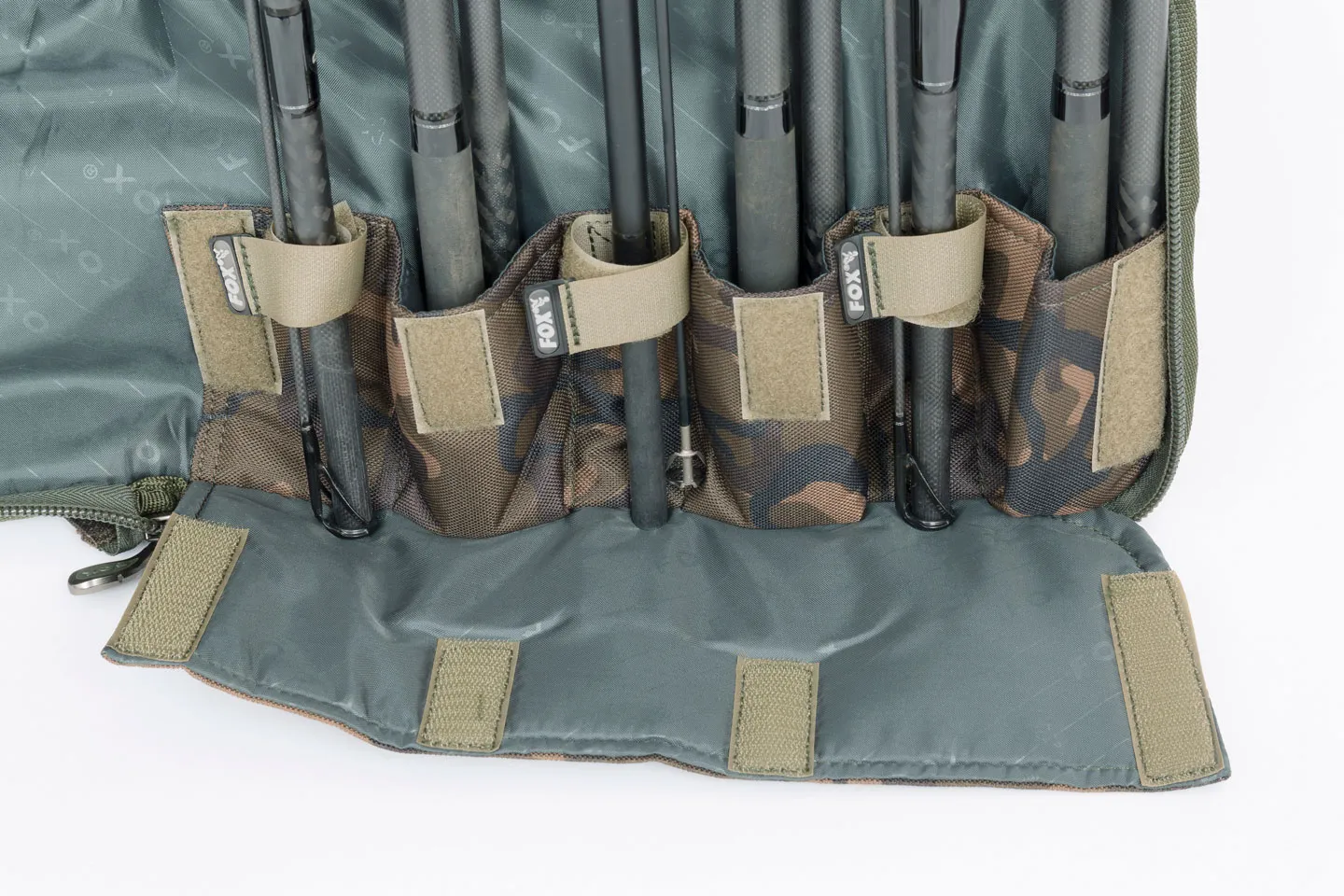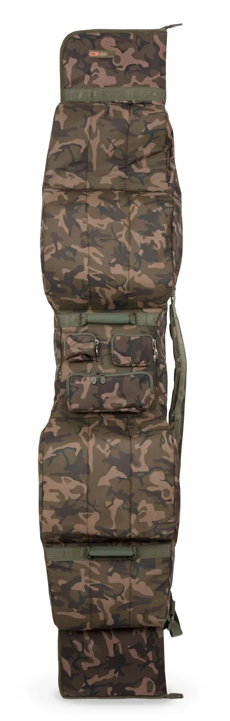 Découvrez le Fox Camolite 12ft 3+3 Rod Case, un fourreau de pêche unique avec compartiments pour 6 cannes et accessoires. Compatible avec les anneaux 50mm séries K et les gros moulinets type Big Pit.