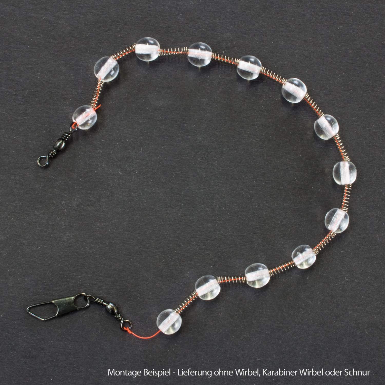 Avec les glasperlen Tremarella avec des plumes de Troutlook, il est facile de monter une chaîne de perles en verre sur le bas de ligne. Il suffit d'enfiler alternativement les perles en verre avec les plumes sur le fil et d'ajouter un arrêt à environ 1-2 cm des extrémités pour protéger les nœuds et limiter la liberté de mouvement.Troutlook offre tout ce que les pêcheurs de truites modernes attendent