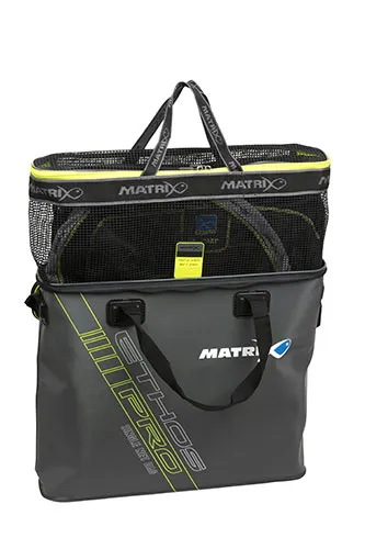 Découvrez ce sac Matrix Dip & Dry conçu pour plonger les bourriches et têtes d'épuisettes dans les bacs antibactériens. Idéal pour faire sécher votre matériel après la pêche. Compatible avec la plupart des sacs à bourriches EVA.