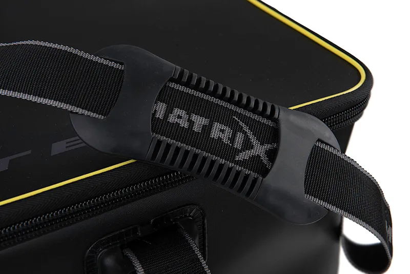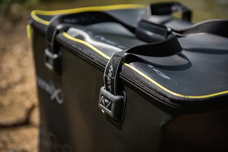 Sac de pêche Matrix Ethos XL en EVA durable. Taille XL idéale pour transporter 5 bourriches. Les coutures thermosoudées rendent le sac entièrement étanche. Équipée avec des fermetures à glissière surdimensionnées ultra-résistantes et une bandoulière amovible rembourrée. Dimensions : L65cm x L35cm x H50cm.