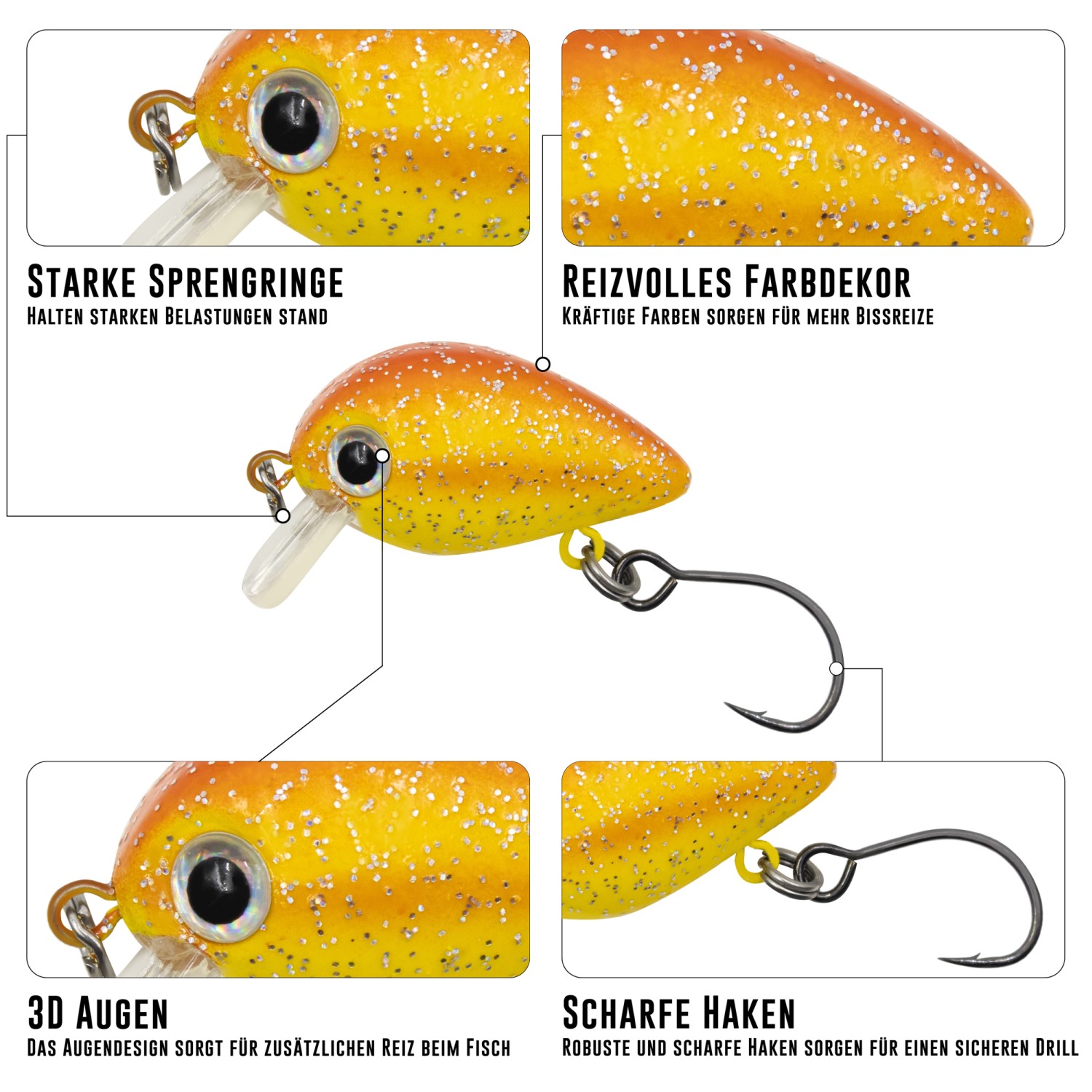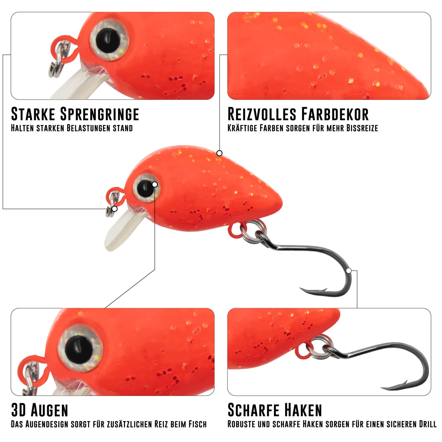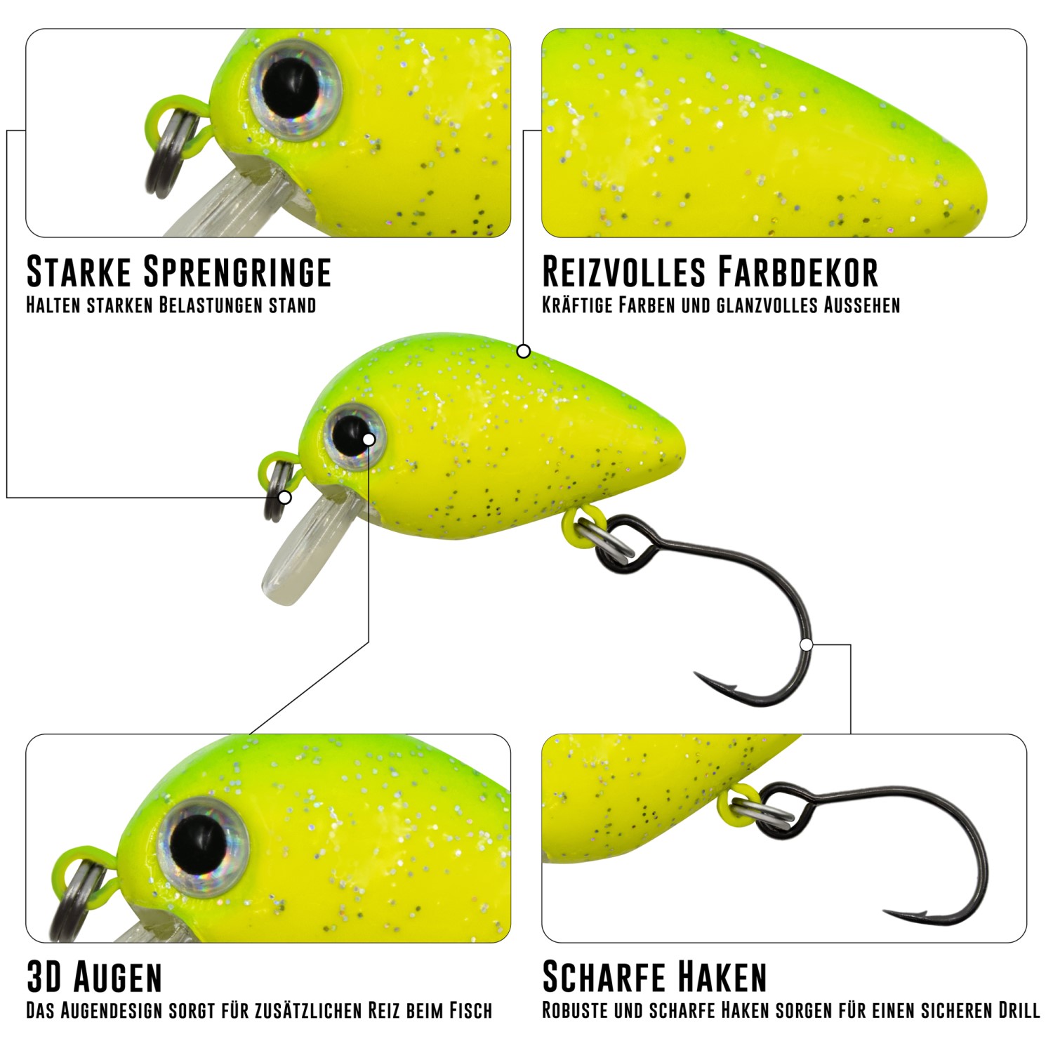 Conformément au dicton - les couleurs déterminent souvent leur succès. C’est pourquoi, les leurres Troutlook Trout Crank sont disponibles dans les mêmes couleurs vives et sobres qui attirent nécessairement l'attention.