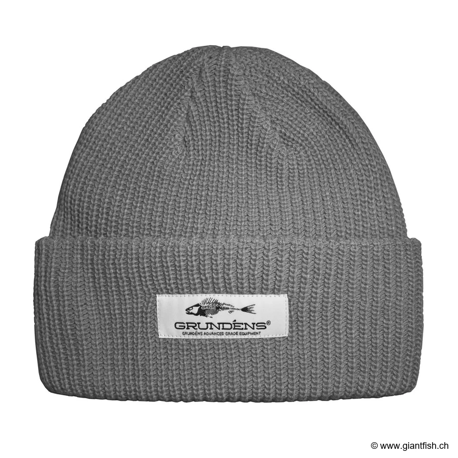 Grundens beanie. Combining superior comfort, durability, and style, this premium beanie is ideal for anyone spending long days outdoors, whether at sea, by the river, or for any other outdoor activity. Proudly displaying the iconic logo of the famous Grundens brand, this accessory becomes essential for staying warm in all conditions, while showcasing an authentic and elegant look.