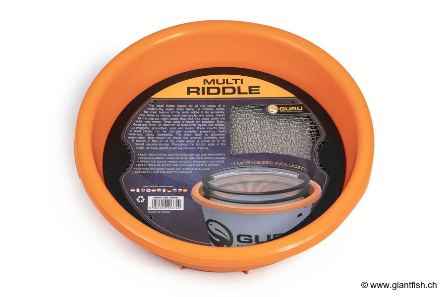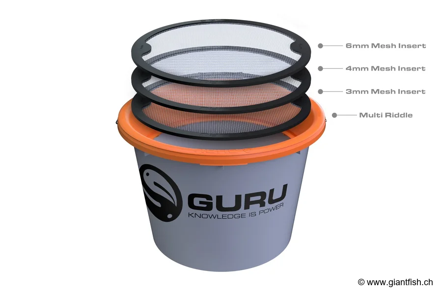 - Is the Guru Multi Riddle compatible with all standard buckets? Yes, it fits 18L type Guru and Mainline Match buckets, as well as most similar buckets.