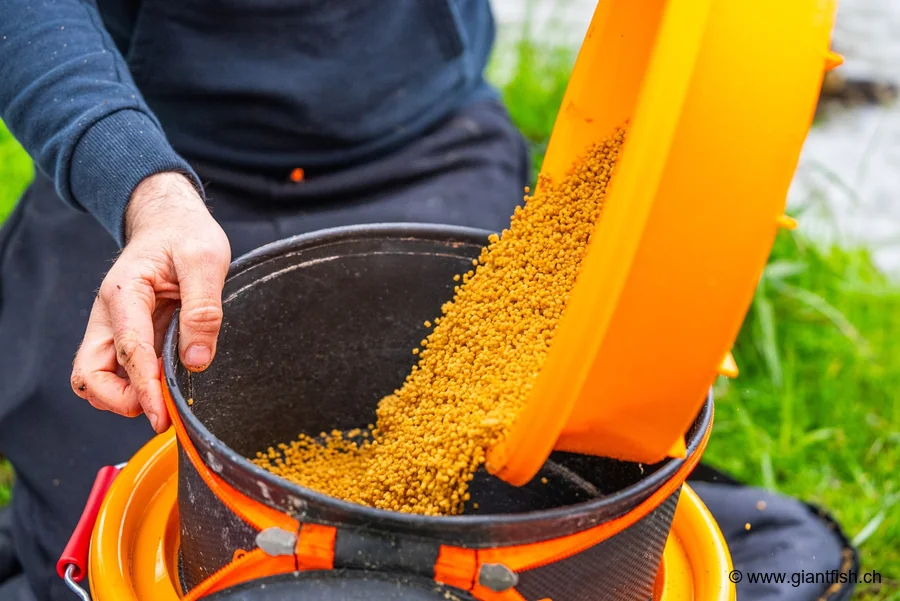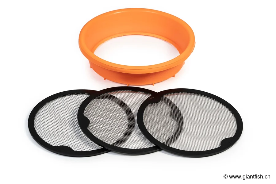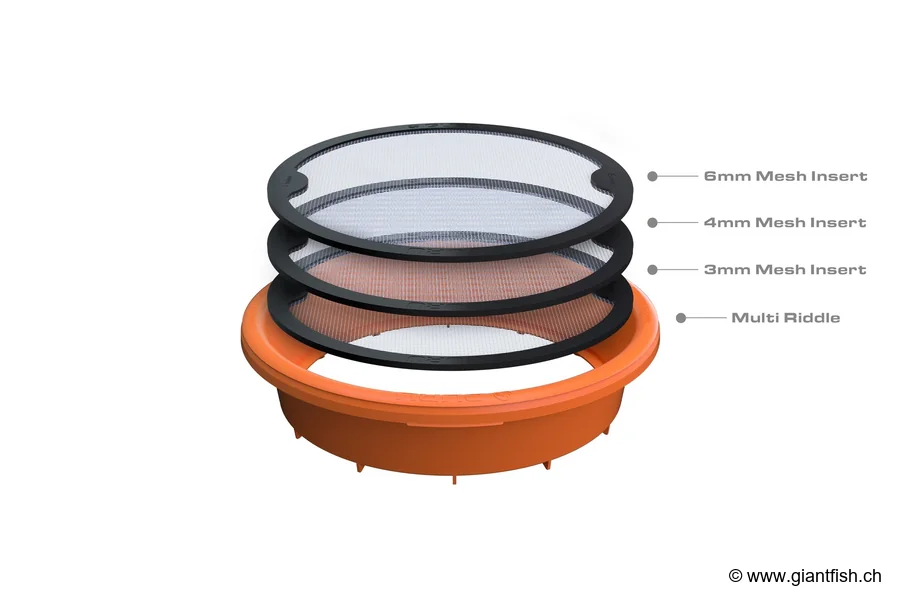 Always use the riddle on a stable surface. After use, remove the mesh for effective cleaning under clear water. In competition, prepare multiple buckets with different riddles to save time and benefit from optimal preparation of all your baits.
