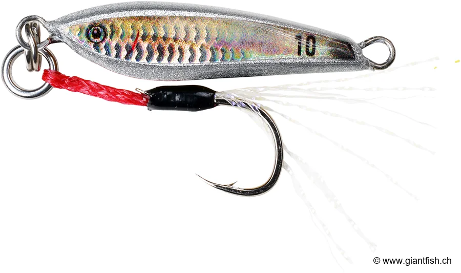 Its action on the fall is particularly deadly: during the drop the jig flutters and begins to glide, mimicking the behavior of a distressed prey. Many fish strike precisely at that moment, making it a perfect lure for educated predators that refuse overly fast actions.