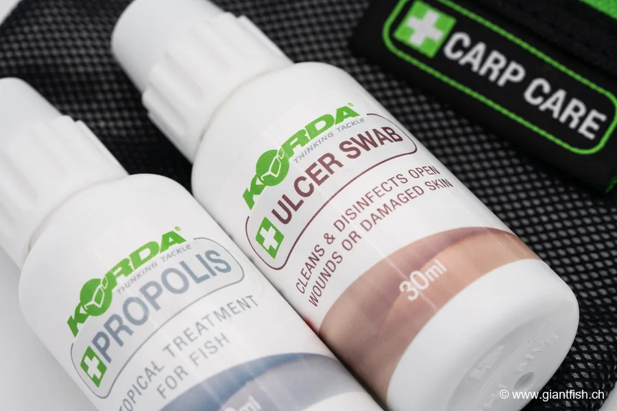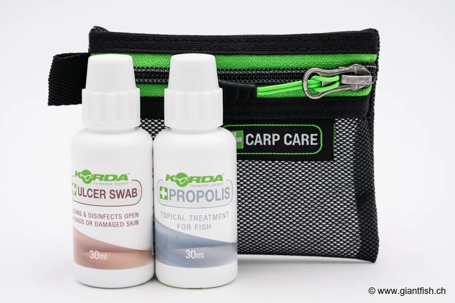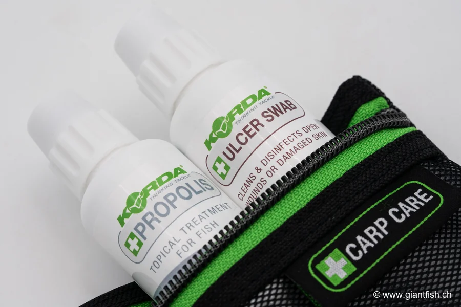 Testimonial or expert opinion"Having been a passionate angler for over 20 years, I adopted the Korda Carp Care Kit immediately after its release. The combination of Ulcer Swab and Propolis is extremely effective, the healing of wounds visibly accelerates, and I am reassured to respect the principles of no-kill to the best of my ability. It's now impossible to go fishing without this kit in my bag!" (May 2024)FAQ and additional information- How often should I use the Carp Care Kit?: Every time a fish is released with a wound, even minor.