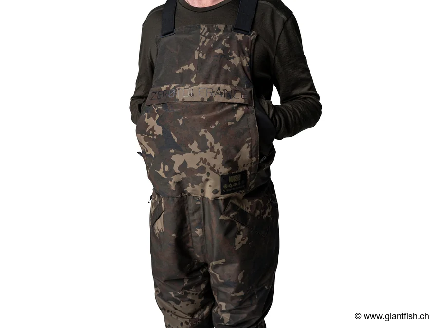 Designed for anglers who spend long hours at the water's edge, the NASH ZT Helluva waterproof fishing bib provides full protection against rain, wind and cold. Part of the Zero Tolerance range, it is conceived as a true outer "second skin" for those who want to invest once in a reliable, durable and comfortable garment capable of handling intensive sessions all year round.